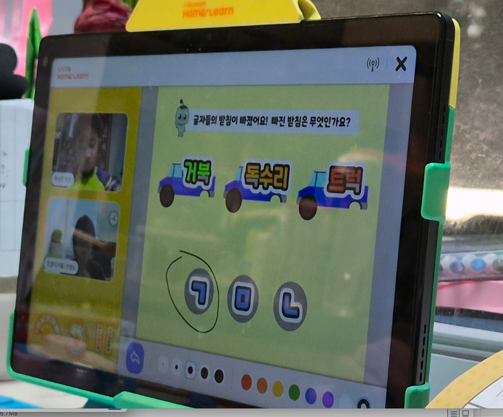 종이에 받아쓰기 하는것보다 이렇게 하니 더 재밌는 모양입니다.