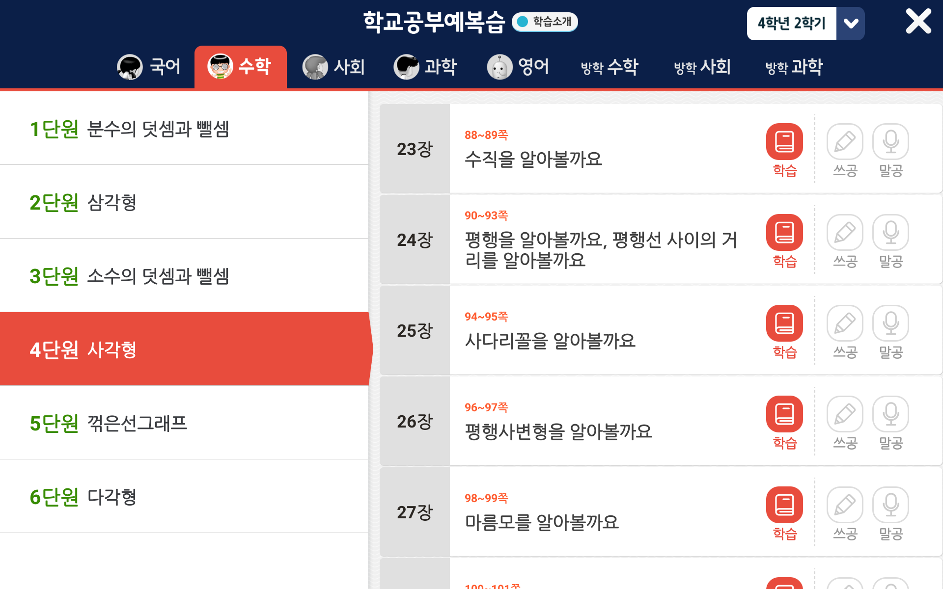 순차적으로 각 단원에 대한 상세 설명으로 찾아올게요! 4학년 2학기 수학도 아이스크림 홈런과 함께 공부해요