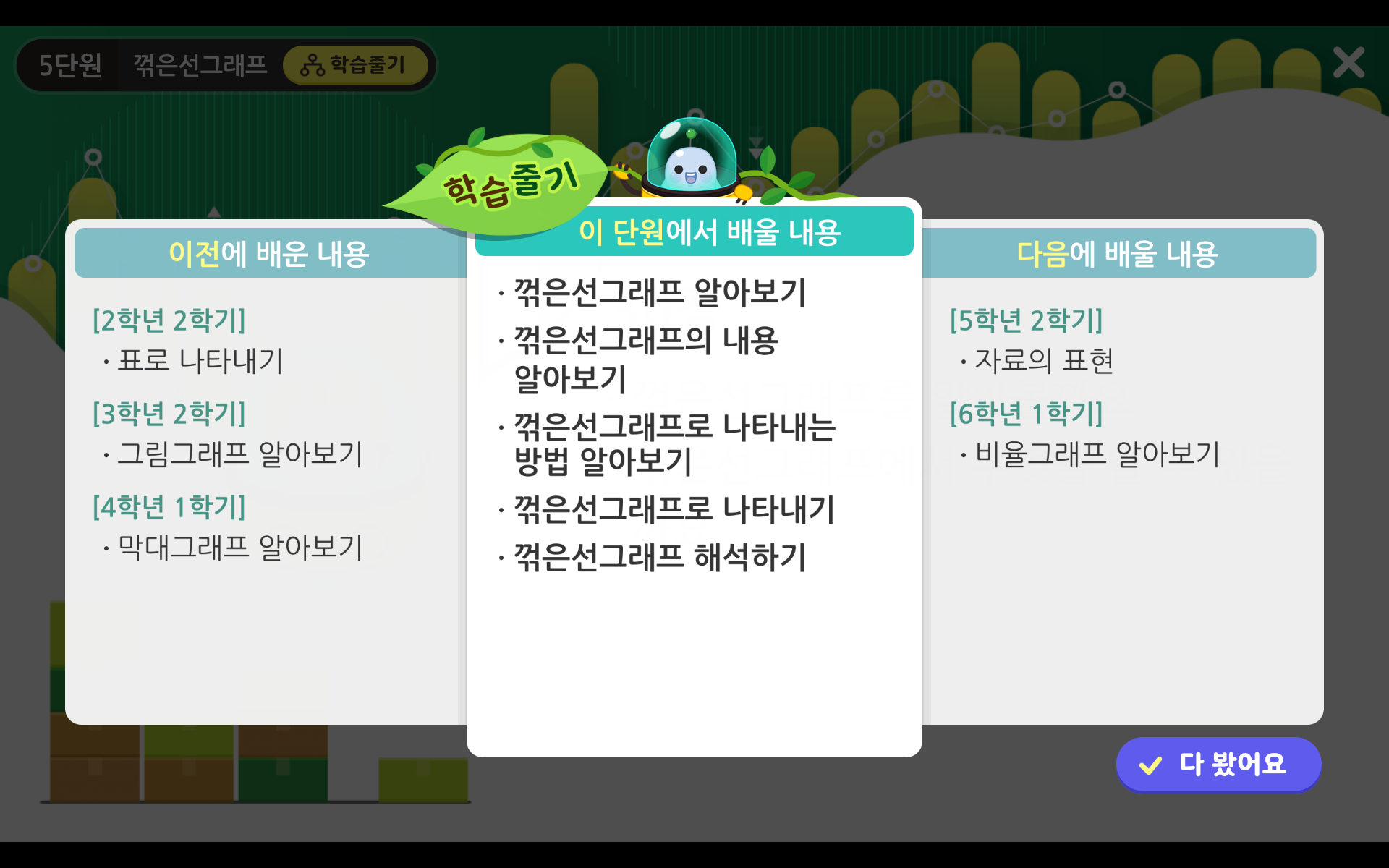 꺾은선그래프 시간에는 꺾은선그래프를 해석하고 그리는 방법 및 자료를 어떻게 변환하는지를 배웁니다.