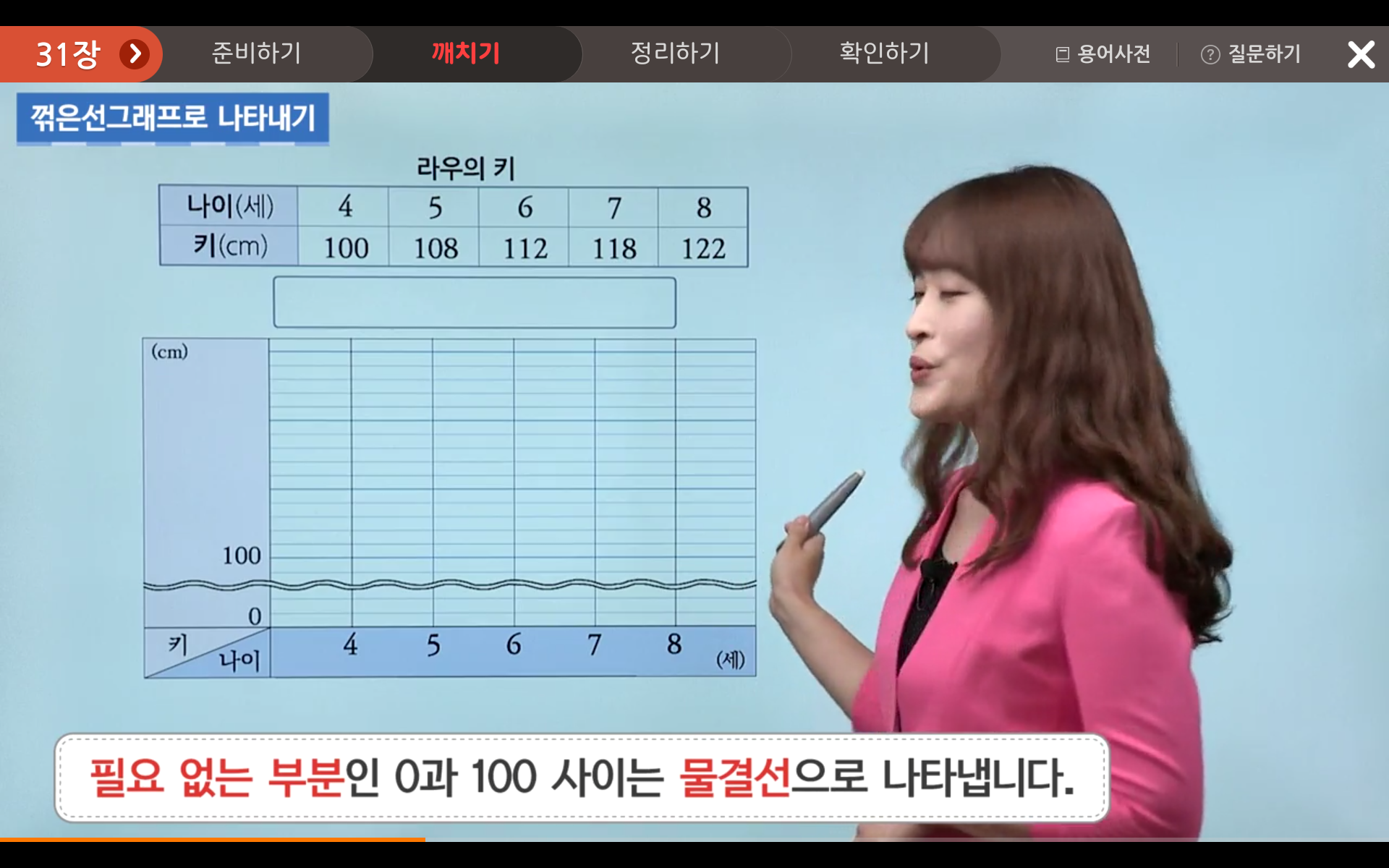 꺾은선그래프의 물결선은 필요 없는 부분을 생략한다는 의미로 사용됩니다.