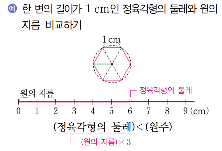 ㄴ) 원주율 알아보기 원주율을 소수로 나타내면 3.141592653587932……와 같이 끝없이 계속 됩니다.