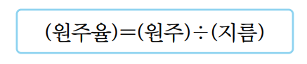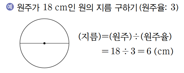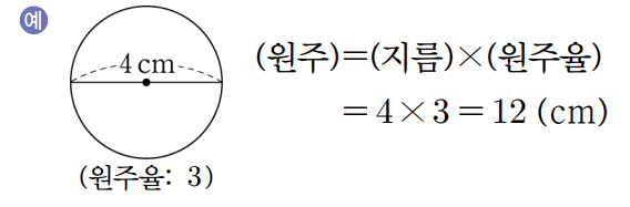 3) 원주와 지름 구하기 ㄱ) 지름을 알 때 원주 구하기 원의 지름을 안다면 아래의 원주율 계산 공식을 사용하여 원주 값을 구할 수 있습니다. (원주율)=(원주) ÷(지름) -> (원주)=(지름)X(원주율)
