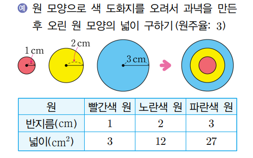 반지름이 길어질수록 원의 넓이도 넓어집니다. 반지름이 2배 길어지면 원의 넓이는 3배 넓어지고, 반지름이 3배 길어지면 원 의 넓이는 9배 넓어집니다.