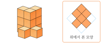 4)쌓기나무로 쌓은 모양과 이를 위에서 본 모양입니다. 물음에 답해 봅시다.