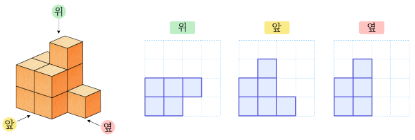 (3) 쌓기나무로 쌓은 모양을 만들어 보고, 옳게 그렸는지 확인해 보세요.