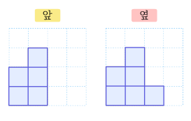 (2) 준기와 연수가 본 모양은 뒤집으면 서로 같고, 보영이와 슬기가 본 모양도 뒤집으면 서로 같습니다. - 예) 아니요. 뒤집어서 같은 모양인 경우는 한 방향만 있어도 됩니다.