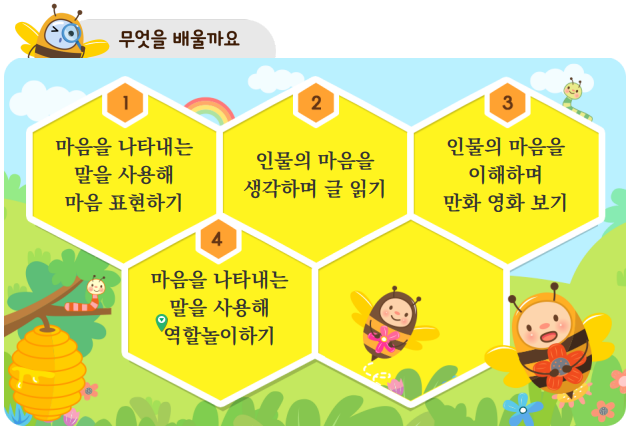 그럼, 지금부터 아이스크림 홈런과 함께 2학년 1학기 국어 마음을 나누어요에 대해 학습 내용을 알려드리겠습니다.