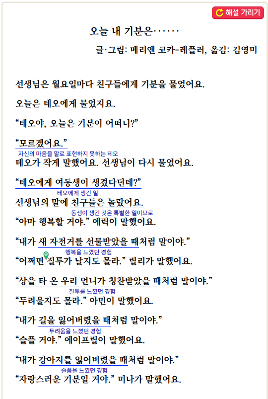 3) 「오늘 내 기분은······」에 나오는 인물과 비슷한 마음이 들었던 경험을 떠올려 봅시다.