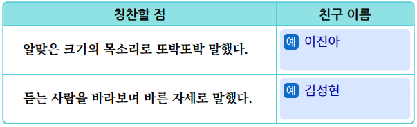 (4) 발표를 잘한 친구를 칭찬해 봅시다.
