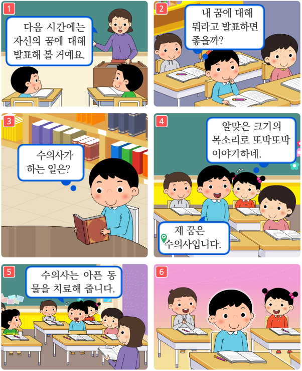 3. 그림을 보고 남자아이가 어떻게 발표하는지 친구들과 이야기해 봅시다.