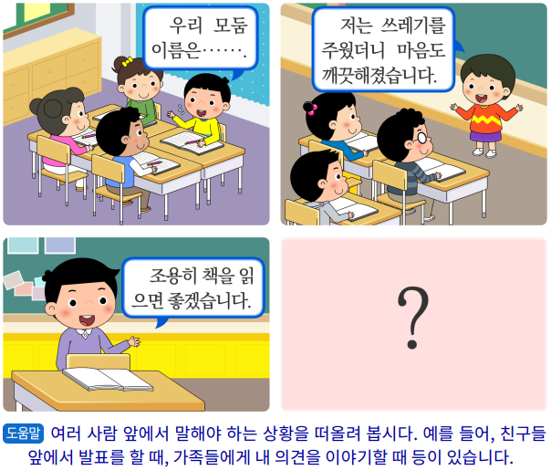 4. 여러 사람 앞에서 말해야 하는 상황을 떠올려 봅시다.