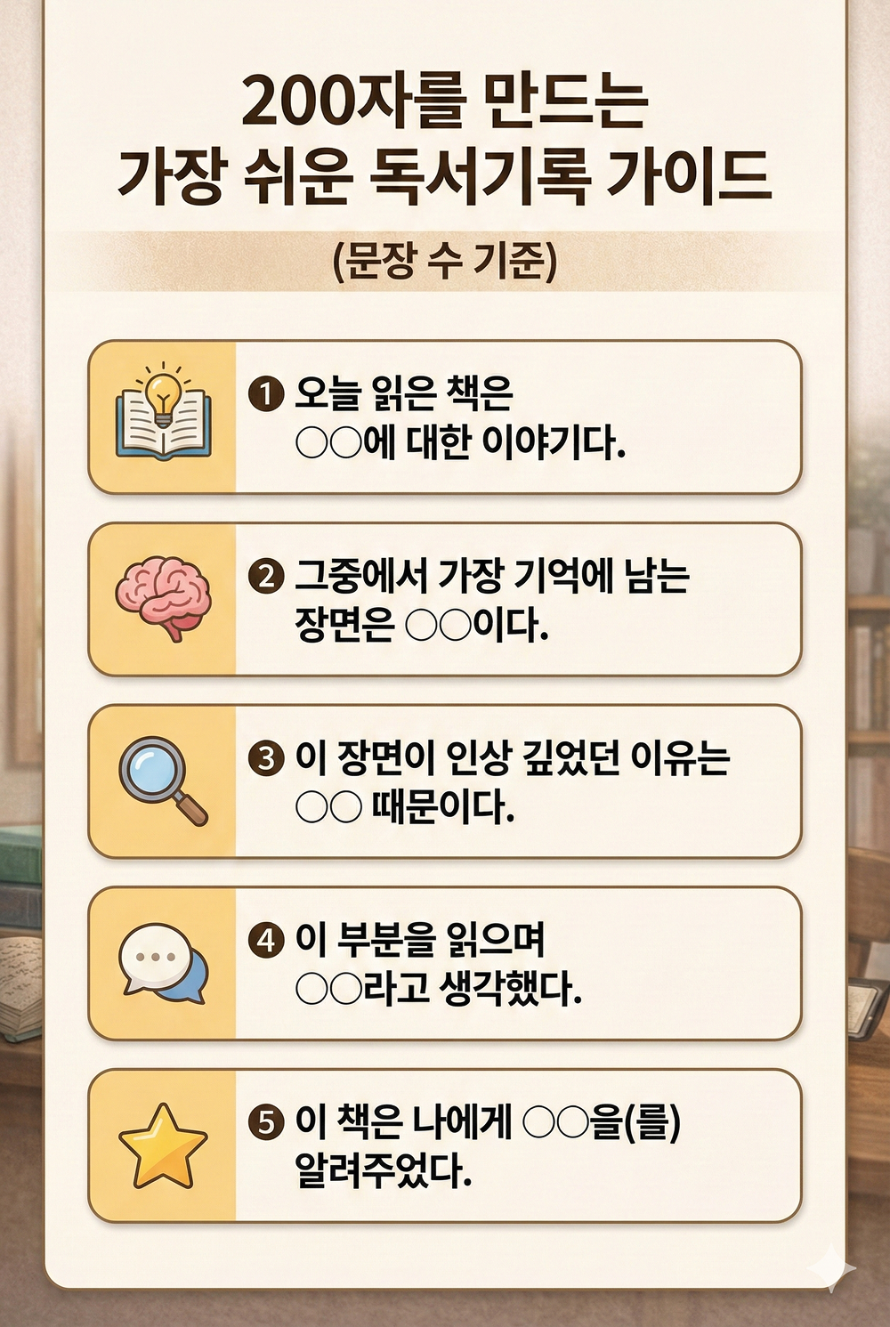 200자는 책의 줄거리를 단순 나열하는 것을 넘어, 자신의 생각과 근거를 담을 수 있는 최적의 단위입니다.